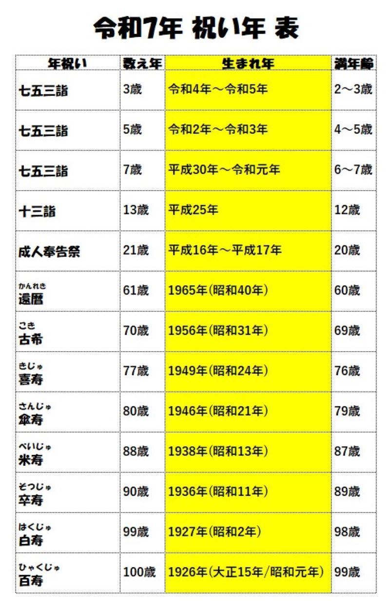 ・長寿祝(還暦・古稀・喜寿・傘寿・米寿・卒寿・白寿など)