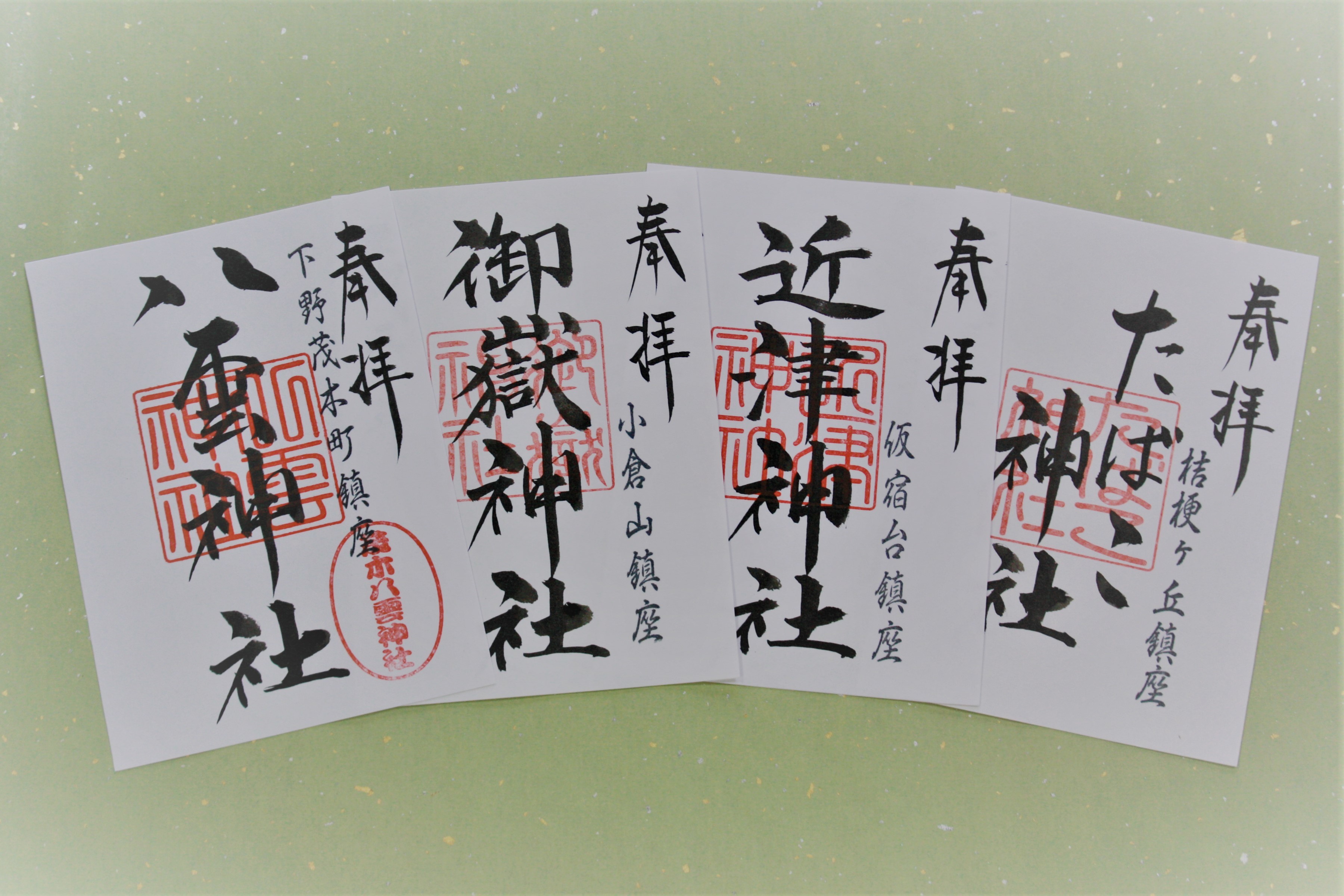 御朱印は、 八雲神社のほか、八雲神社より徒歩15分程度の場所にある 御嶽(おんたけ)神社・ 近津(ちかつ)神社・ たばこ神社を加えた、計4社を通常版御朱印を通年で頒布しております。