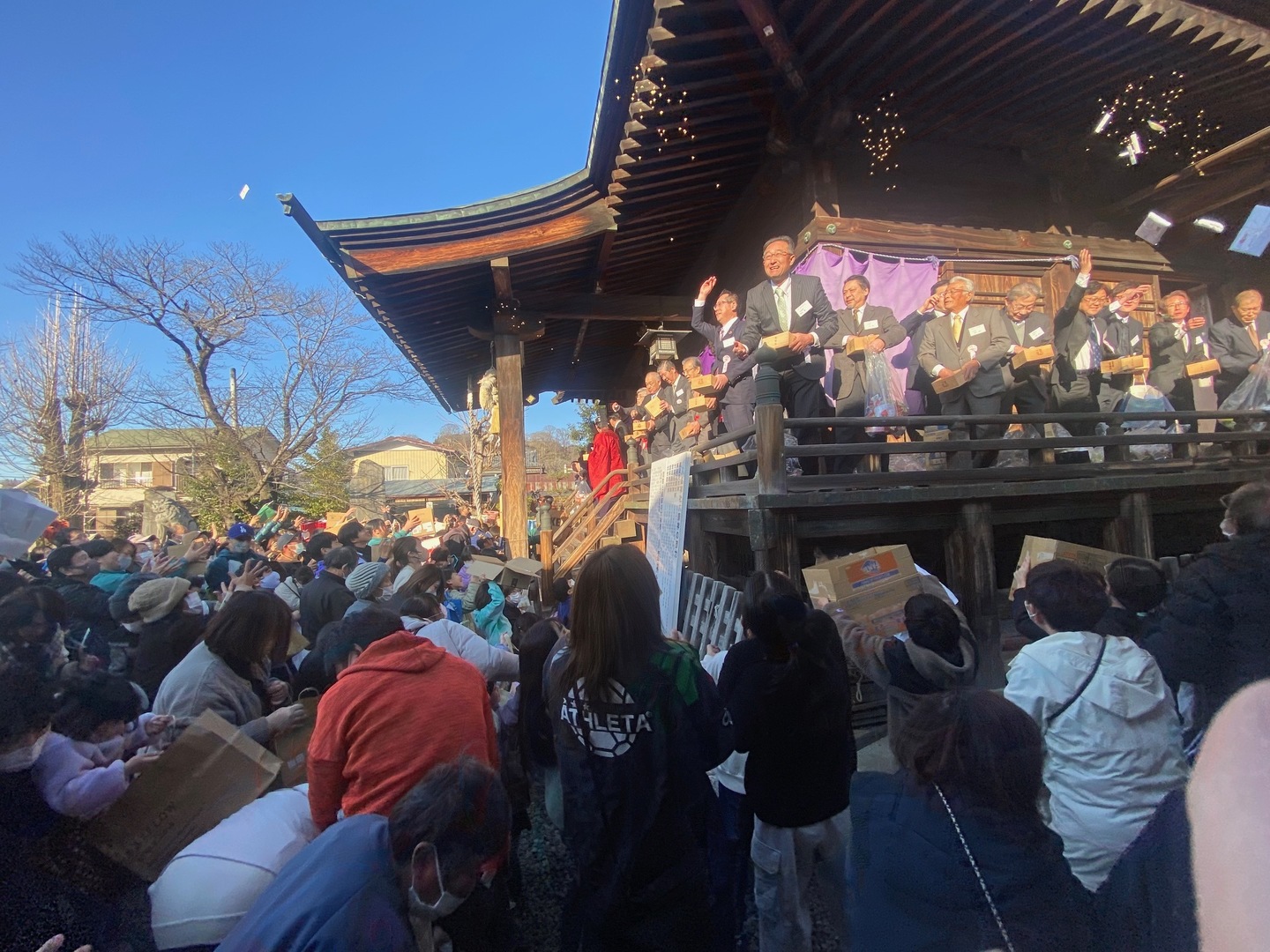 当日は、数え42歳の厄年を迎える「年男」の皆様と、茂木町内外の企業・団体の首長様方にご加盟頂いております「節分講」の、両団体によります豆撒きも行われます。